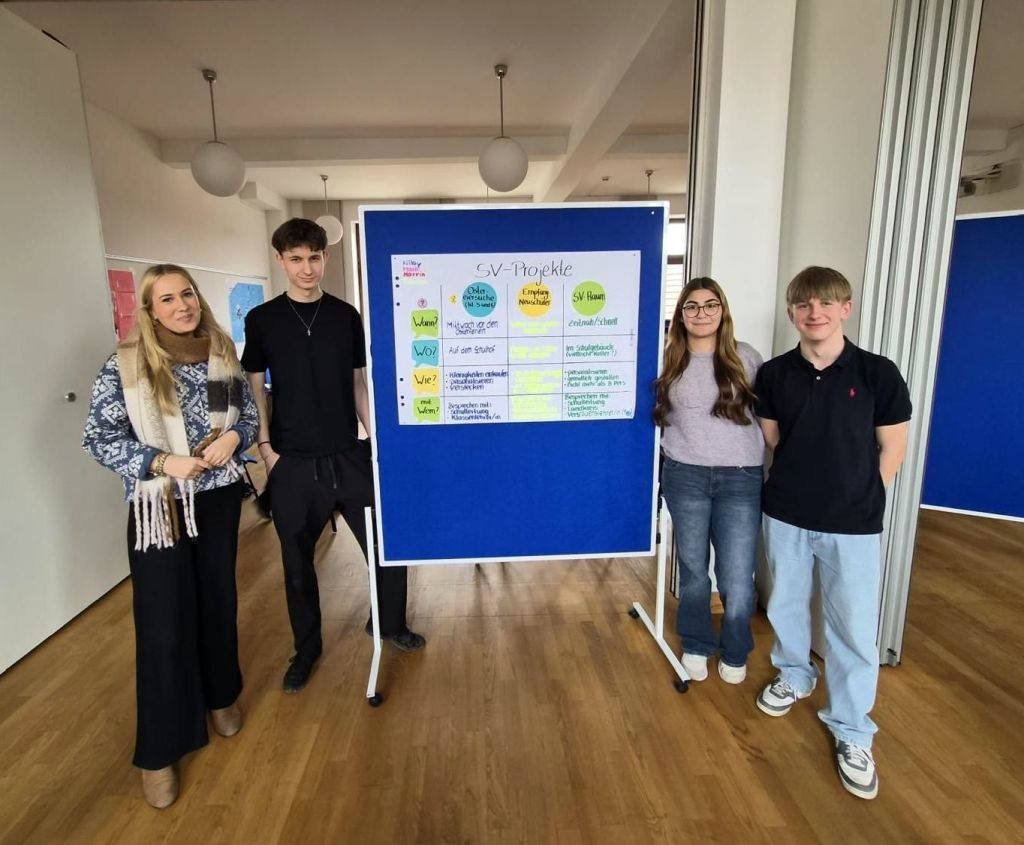 Mit dabei waren unsere Schulsprecherin Nilay sowie die Vertreter/-innen Marie, Marvin und Damian – begleitet von unserem Lehrer Herr Gillet.